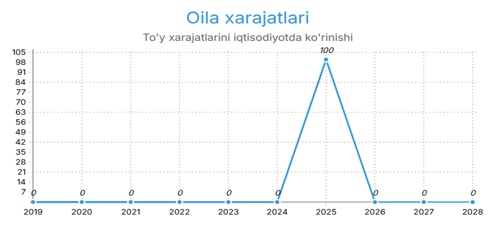 To‘yga tayyorlanishning katta iqtisodiy muammosi shundaki, oila olti yil davomida yig‘ayotgan pul iqtisodiyot aylanishidan chiqib ketadi. Bu mablag‘ iste’molga sarflanmagani uchun talab kamayadi, investitsiyalarga sarflanmagani uchun iqtisodiy faollik sustlashadi. 1-rasmda tasvirlangan grafikda 2019-2024-yillarda oila jamg‘arma qilgani sababli oilaning iste’moli past bo‘ladi va pul iqtisodiyotga kira olmaydi. 2025-yilda esa to‘y o‘tkaziladi va jamg‘arilgan mablag‘ bir zumda sarflanadi. Iste’mol keskin oshadi, iqtisodiyotda esa vaqtinchalik jonlanish yuz beradi. 2026-yildan boshlab oila yana tejashga yoki qarzlarni to‘lashga majbur bo‘ladi. Natijada yana iste’mol pasayadi. Shu tariqa ushbu tebranish iqtisodiyotda barqaror bo‘lmagan jarayonni yuzaga keltiradi.